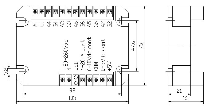 3、模塊各功能端的控制特性均為正特性,即控制電壓越高,模塊強(qiáng)電主回路輸出電壓越高。
