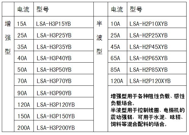 注:帶有閉環(huán)(負(fù)反饋)功能的產(chǎn)品,型號(hào)在上述基礎(chǔ)上增加后綴-F,格式為LSA-H2P口口YB-F 。閉環(huán)產(chǎn)品均適用于220V負(fù)載。