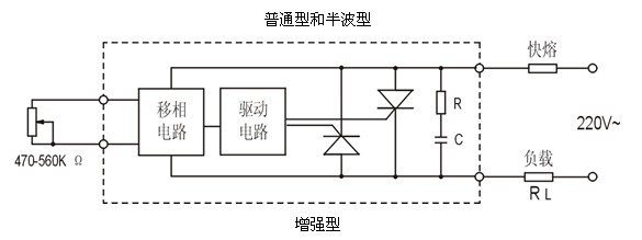 LSA-R系列(英文名稱為Loncont Solid-State Adjuster)固態(tài)調(diào)壓器內(nèi)部集移相觸發(fā)電路、放大驅(qū)動電路、阻容吸收回路、單向或雙向可控硅等于一體,通過電位器手動調(diào)節(jié)以改變阻性負(fù)載上的電壓,以調(diào)節(jié)輸出功率。固態(tài)調(diào)壓器應(yīng)用在110-265Vac電網(wǎng)上,外接470K-560K電位器,移相范圍0°-170°,斷態(tài)漏電流小于12mA。增強型由于內(nèi)置專門的驅(qū)動電路,在大電流使用條件下性能穩(wěn)定。