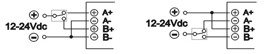 7、輸入控制電壓為12-24Vdc,共陽(yáng)或共陰可任意接線?刂凭共陽(yáng)連接時(shí),A—、B—端低電平有效,當(dāng)A—、B—端同時(shí)為低電平時(shí)模塊自動(dòng)關(guān)閉。共陰連接時(shí),A+、B+端高電平有效,當(dāng)A+、B+端同時(shí)為高電平時(shí)模塊自動(dòng)關(guān)閉。其他控制電壓也可定制。
